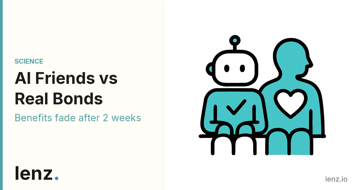 Preprint study (n=500) finds AI companions reduce loneliness scores by 20% initially but effects diminish after 2 weeks without human integration. Not equivalent to sustained human bonds.