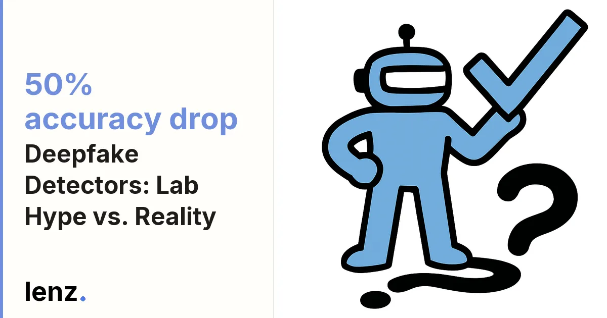 - Multiple sources document that detection accuracy collapses by 45–50% outside controlled lab conditions, particularly against novel generators, compressed media, and adversarial attacks.