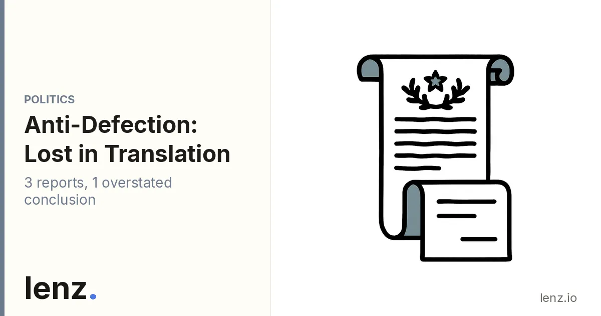Politics“The Dinesh Goswami Committee (1990), Law Commission of India 170th Report (1999), and National Commission to Review the Working of the Constitution (2002) concluded that the Anti-Defection Law enacted through the Tenth Schedule under Articles 102(2) and 191(2) has weakened intra-party democracy by extending party whips beyond confidence votes and money bills, and recommended restricting disqualification only to motions affecting government survival.”