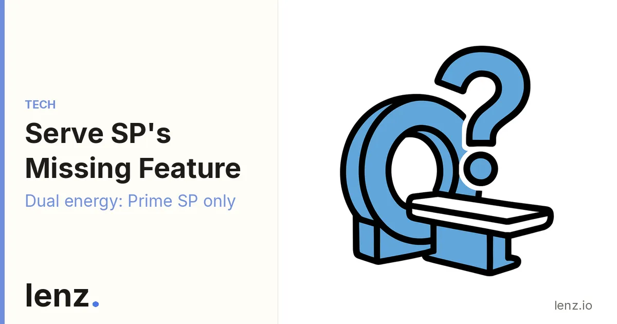 - Canon explicitly markets Dual Energy as a feature of the Aquilion Prime SP, a different and higher-tier model, suggesting the Serve SP is intentionally positioned without this capability.