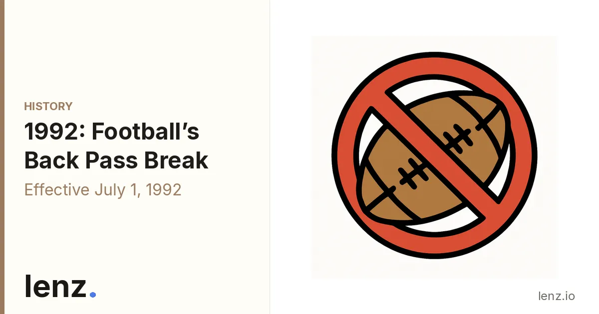 IFAB minutes from March 1992 confirm approval of the back-pass prohibition, effective 1 July 1992 worldwide, though some leagues like the Premier League first enforced it in August 1992 matches.
