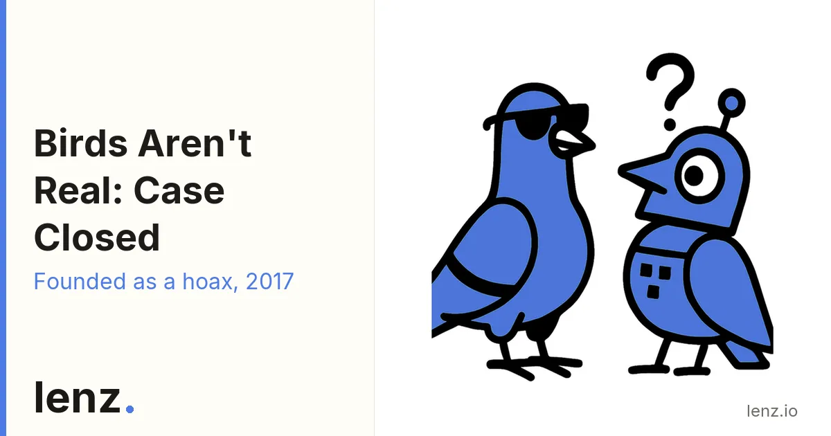 - The 'Birds Aren't Real' movement is confirmed satire — its founder publicly broke character in 2021 to acknowledge the entire premise is fictional.