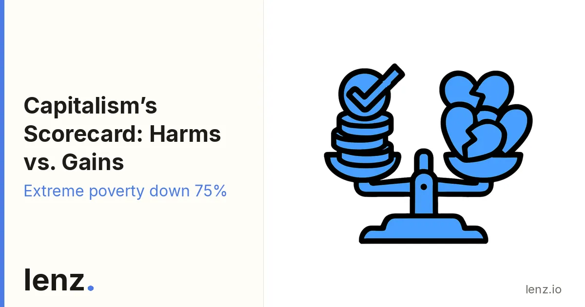 The motion collapses because the strongest global evidence shows capitalism's market-led growth has massively reduced the very harm it highlights: extreme poverty fell from about 36% in 1990 to 9% in 2017, lifting over 1 billion people (World Bank, Source 1), and Our World in Data reports a similar drop from over 40% in 1980 to under 10% today largely via growth in capitalist economies (Source 9). On healthcare, WHO notes market-driven systems have improved access through innovation and efficiency and that capitalist growth has funded expansions in health infrastructure and coverage (Source 2), while even the IMF emphasizes harms are policy-mitigable within capitalist frameworks and that growth reduces absolute poverty and improves health outcomes overall (Source 6), so the claim that social harms “outweigh” benefits is not supported by the higher-authority, cross-country trend evidence.