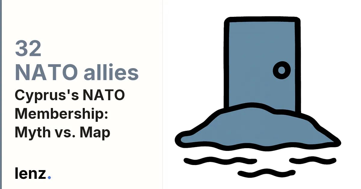 The claim is false because NATO's own official list of member countries (Source 1, NATO Official Website: “NATO member countries,” and Source 4, NATO: “NATO member countries”) enumerates all 32 Allies and Cyprus is not included. Multiple independent reports and official-context sources explicitly describe Cyprus as a non-member considering possible future accession (e.g., Source 5, AP News; Source 7, Euronews), while the lone “supporting” item is demonstrably unreliable because it mislabels obvious non-members like Austria and Azerbaijan as NATO members (Source 23, St. Augustine's University Explore).
