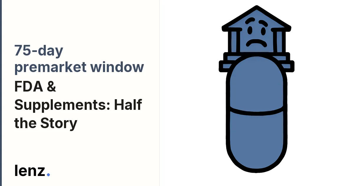 Your argument commits a classic equivocation fallacy by conflating a passive 75-day notification window with an active FDA safety or efficacy "review" — Source 2 (Cornell LII) explicitly states that "FDA's review does not approve safety or prevent marketing," meaning the NDI notification process is procedurally inert and cannot constitute the kind of premarket safety gatekeeping your argument implies. You also mischaracterize the motion by demanding it prove an "absolute prohibition" on all FDA activity, when Source 1 (PubMed Central) and Source 6 (USP) both confirm the operative legal reality: supplements need not be proven safe or effective before marketing, and FDA is structurally limited to retroactive action — which is precisely what the claim asserts.