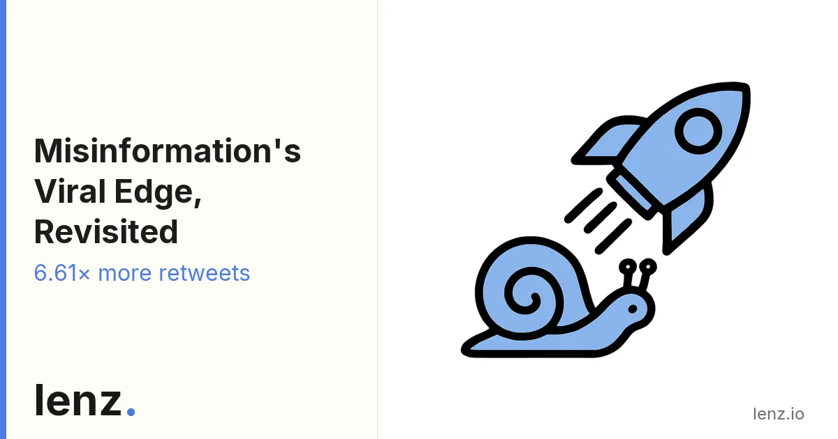 The claim is powerfully supported by landmark peer-reviewed research: Source 3 (MIT Sloan) reports a study published in Science finding that falsehoods are 70% more likely to be retweeted than the truth and reach 1,500 people approximately six times faster, while Source 6 (ECPR The Loop) corroborates this across economic and political studies showing false or emotionally charged content consistently travels faster and farther than corrections. Further reinforcing this asymmetry, Source 8 (ScholarWorks @ UTRGV) demonstrates that even when correction messages exist, "ineffective" corrections actively amplify misinformation at a rate of 1.37% per 1% increase — outpacing the mitigating power of effective corrections — and Source 9 (MIT News) shows that attempting to correct falsehoods on Twitter can paradoxically generate less-accurate tweets and greater toxicity, confirming that fact-based corrections structurally fail to match the viral reach of false claims.
