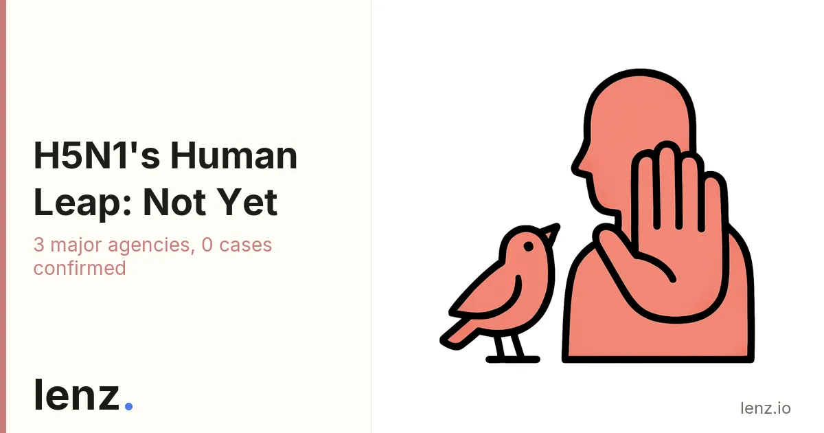 - The CDC, WHO, and ECDC — the most authoritative sources on this topic — all explicitly report no sustained human-to-human transmission of H5N1 as of their most recent updates through late March 2026.