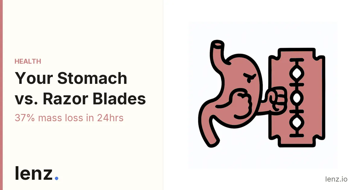 The claim omits key context about exposure time, alloy composition (many razor blades are stainless steel with corrosion resistance), and the fact that in-vivo blades are typically removed or pass through largely intact; even the cited in‑vitro result is only partial mass loss after ~24 hours, far longer than typical gastric residence (Sources 4, 7, 9). With full context, it's misleading to say the stomach “can dissolve razor blades” in any ordinary, real-world sense—at most gastric acid can slowly corrode them under prolonged lab-like exposure, not dissolve them during digestion.