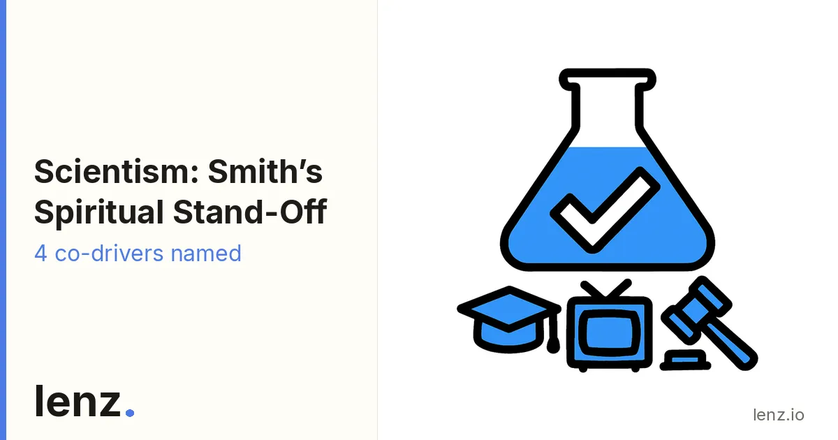 - Smith's book uses a 'four walls of the tunnel' framework (science, higher education, media, and law) as structural co-drivers of spiritual decline — calling scientism the singular 'primary cause' overstates the book's own architecture.