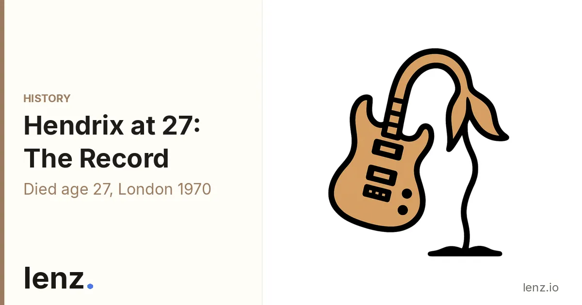 Tragically, Hendrix died on September 18, 1970, in London at the age of 27. He is widely regarded as the greatest guitarist in rock history.