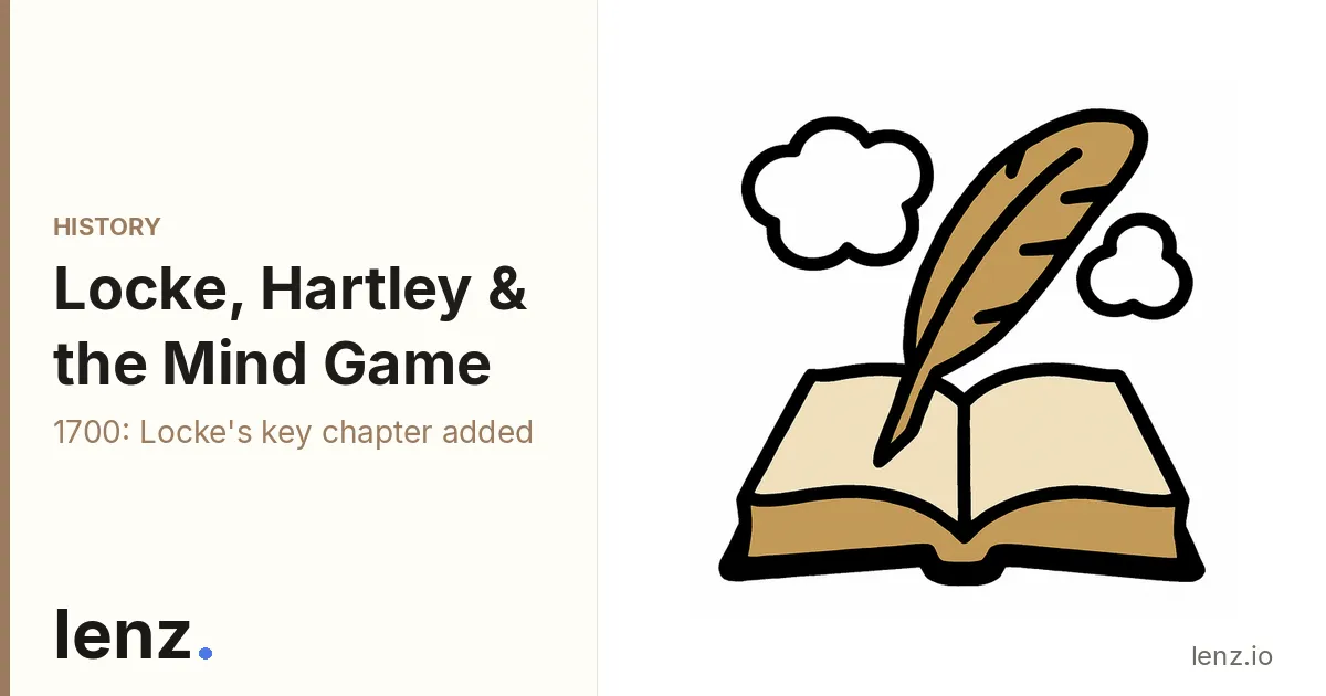 Locke's Essay explicitly introduces the “association of ideas” (added as a dedicated chapter in later editions) and is widely treated as laying the conceptual groundwork for empiricist associationism, even if not yet a fully systematized psychology (Source 3, Internet Encyclopedia of Philosophy; Source 16, LLM Background Knowledge). Hartley then clearly extends this Lockean starting point into a comprehensive associationist psychology in Observations on Man (1749), a work described as being based on the doctrine of association and recognized as founding/systematizing associationist psychology (Source 1, Cambridge University Press; Source 8, PubMed; Source 15, Google Books).