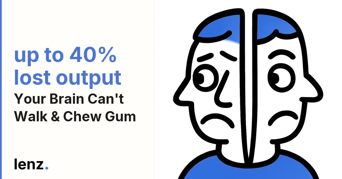Studies show the human brain isn't built to focus on multiple tasks simultaneously. What feels like multitasking is actually rapid task switching, which drains working memory, increases mistakes and creates measurable switch costs. In reality, we're wired for single-tasking, doing one thing with full attention before moving on.