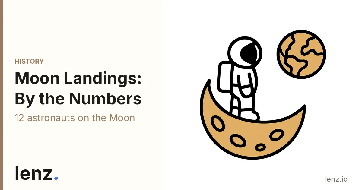 NASA conducted six successful crewed lunar landings between 1969 and 1972: Apollo 11 (July 1969, 2 astronauts), Apollo 12 (November 1969, 2 astronauts), Apollo 14 (February 1971, 2 astronauts), Apollo 15 (July 1971, 2 astronauts), Apollo 16 (April 1972, 2 astronauts), and Apollo 17 (December 1972, 2 astronauts), totaling 12 men who walked on the lunar surface.