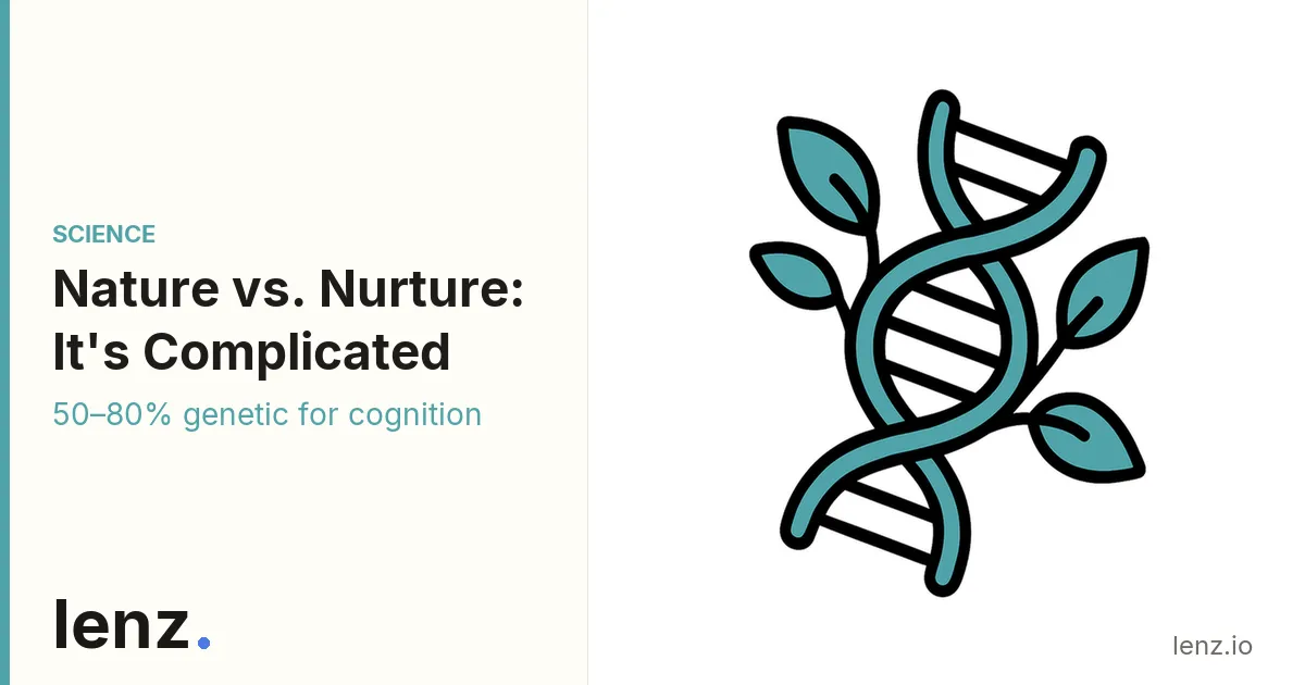 Twin and adoption studies consistently show that genetic factors account for 40-80% of variance in traits like intelligence, personality, and many developmental outcomes, depending on the trait and population studied (e.g., Plomin et al., 2016, Behavioral Genetics). Environmental factors explain the remainder, with shared environment often minimal in adulthood and non-shared environment dominant.