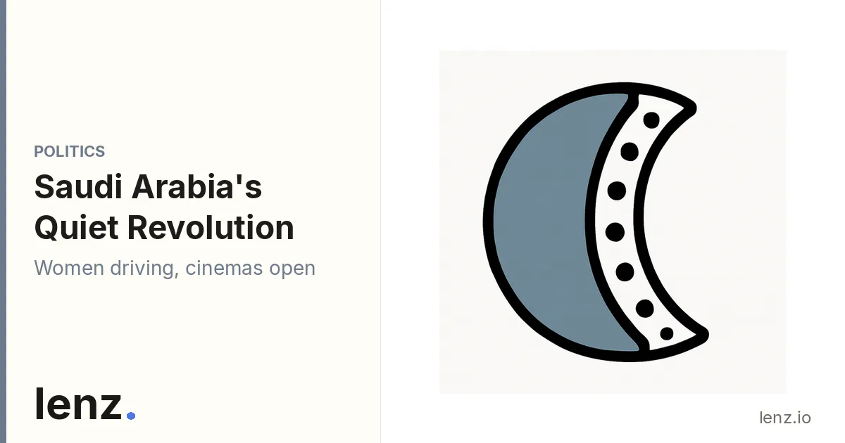 Saudi Vision 2030, launched in 2016 by Crown Prince Mohammed bin Salman, includes social reforms beyond driving such as reopening cinemas in 2018 after a 35-year ban, allowing public concerts with mixed-gender attendance, and hosting events like the 2019 Formula E race with mixed crowds, presented as modernization efforts diverging from prior strict Wahhabi enforcement under the religious police (mutawa).