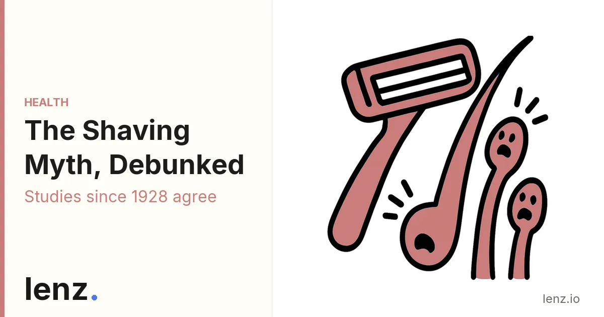 This is a longstanding myth with no scientific support. Shaving does not cause hair to grow back thicker or darker. Major medical authorities (Mayo Clinic, Cleveland Clinic) and controlled human studies dating back to 1928 confirm that shaving has no effect on hair thickness, color, or growth rate. The "thicker and darker" appearance people notice is an optical illusion: shaving creates blunt-cut tips that feel coarser and look darker compared to naturally tapered, sun-lightened hair ends.