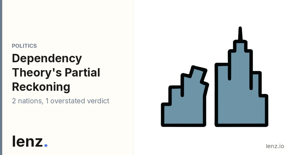- Academic sources (notably Routledge's analysis of Southeast Asian developmentalism) show that governance capacity and structural dependency can coexist — strong state leadership does not automatically invalidate dependency frameworks but rather highlights their incompleteness.