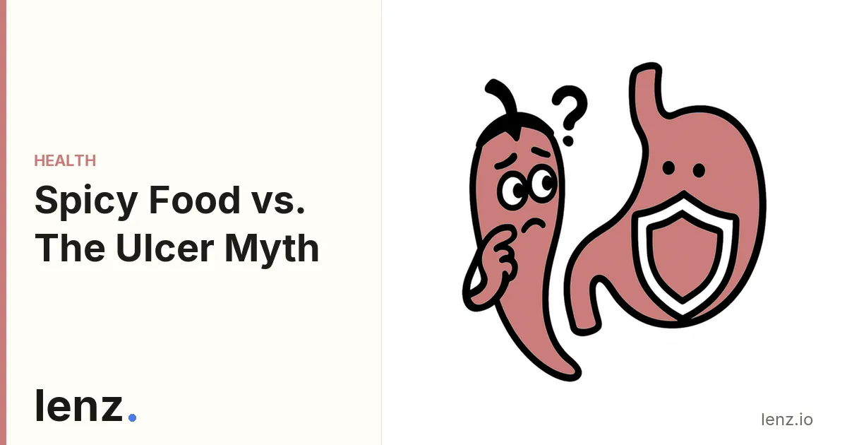No, spicy food does not cause stomach ulcers. This is a common myth. In fact, research suggests that capsaicin, the compound that makes food spicy, may actually help prevent ulcers by inhibiting acid production in the stomach and fighting H. pylori bacteria, which is a primary cause of ulcers. However, if you already have an ulcer, spicy foods can irritate it and may worsen existing symptoms.