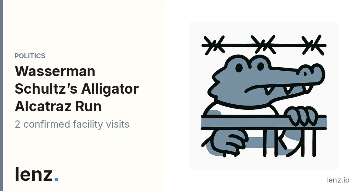 The Everglades Detention Center, nicknamed 'Alligator Alcatraz,' is a Florida state-operated immigration facility in Ochopee, FL, run by the Florida Division of Emergency Management with ICE involvement. Rep. Wasserman Schultz has been a vocal critic, sponsoring the No Cages in the Everglades Act to prohibit federal funding for it. Multiple reports confirm her visits, including a guided tour in July 2025 and unannounced in April 2026.